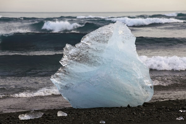 Iceberg on the Beach and in the Atlantic Ocean near the Glacial Lake Joekulsarlon in the South between Skaftafell National Park and Hoefn, Iceland