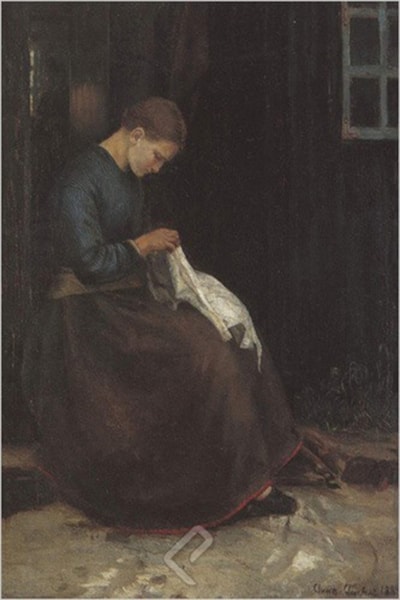 Young Girl Sewing beside the Door