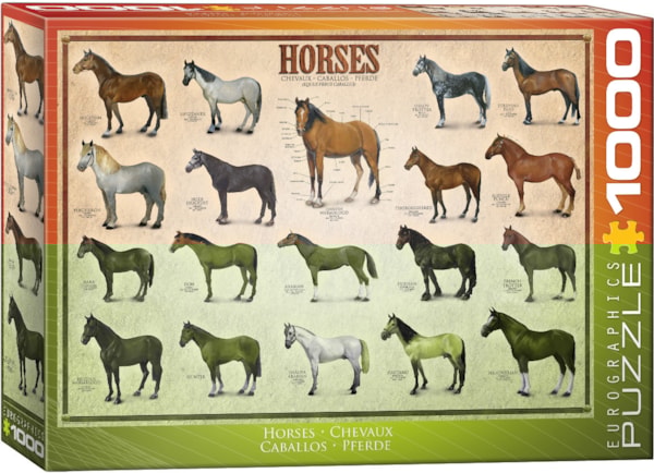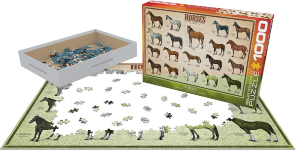 EuroGraphics Horses 1000-Piece Puzzle- Box size: 10" x 14" x 2.37". Finished Puzzle Size: 19.25" x 26.5".