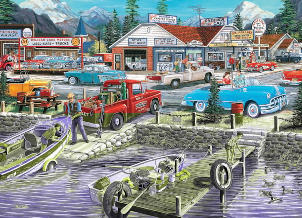 This stunning puzzle features a detailed and atmospheric image of father and son getting their fishing boat read for a day on the lake. From the fishing rods to the bait case, this puzzle is sure to transport you to your happy place.