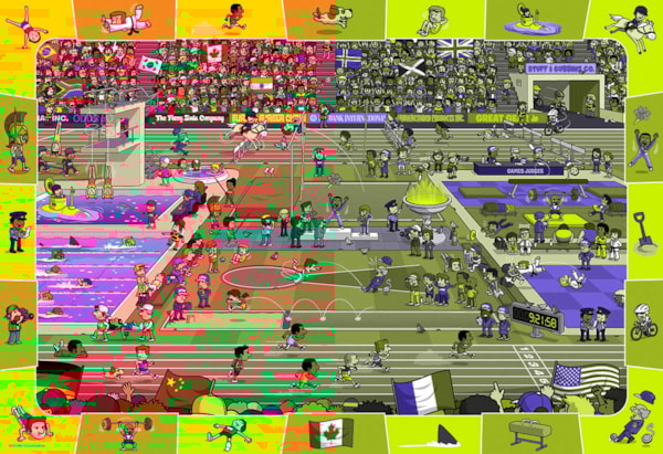 Lots of fun happens at the Olympics, but you'll have to look carefully to make sure you don't miss any of it. This unique spot & find game adds to the fun of a jigsaw puzzle by challenging kids to find hidden items inside the picture.