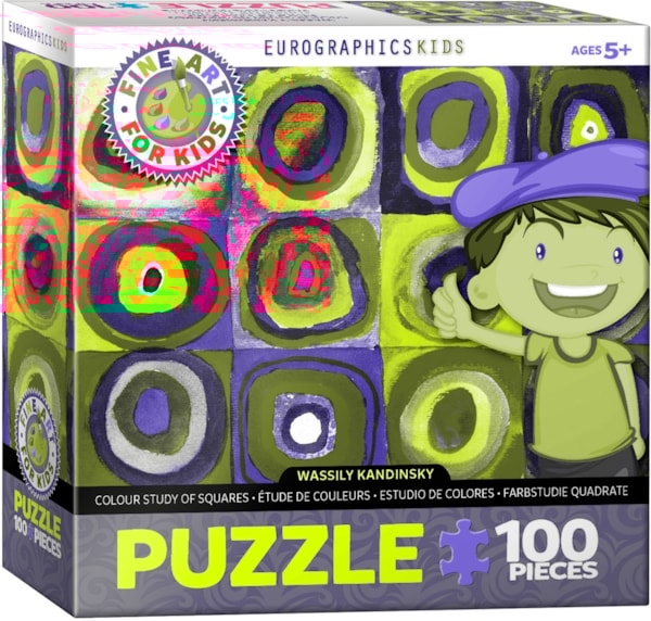 Step into the world of abstract art with this Eurographics puzzle featuring Wassily Kandinsky's "Color Study of Squares." This 100-piece puzzle is a vibrant and educational introduction to one of the pioneers of abstract painting. The puzzle's beautiful and colorful image of concentric circles and squares will delight and challenge you to put it together piece by piece.