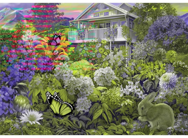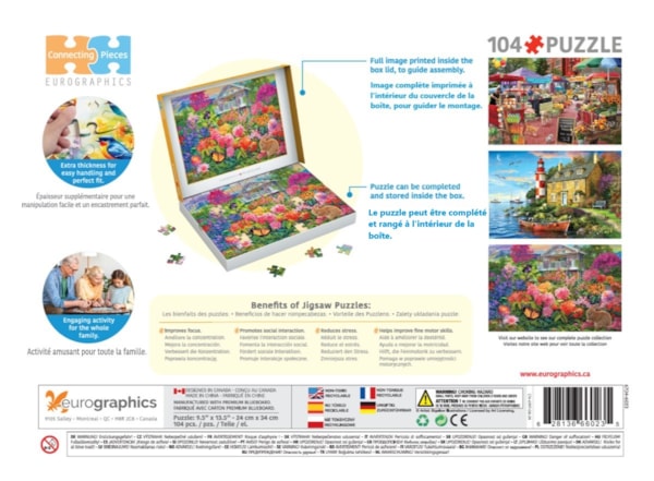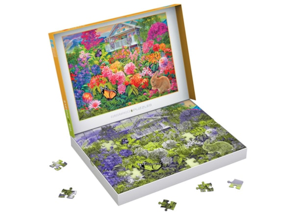 Step into the vibrant beauty of nature with Eurographics’ Connecting Pieces Collection 104-piece puzzle, Bunny Garden, featuring the enchanting artwork of Bigelow Illustrations. This puzzle invites you into a lush garden filled with colorful blooms, playful butterflies, and an adorable bunny, creating a peaceful and whimsical scene. The Connecting Pieces Collection offers extra-thick pieces for easy handling and a full image printed inside the box lid to help guide your assembly. Perfect for nature lovers and puzzle enthusiasts, this delightful puzzle provides a fun and relaxing challenge.