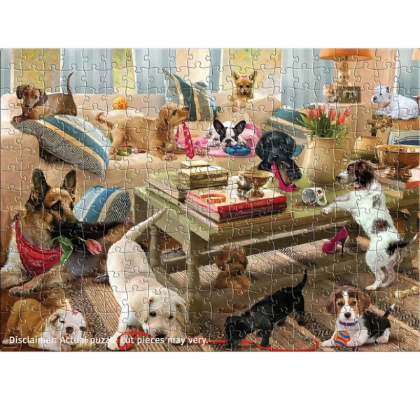 Make room for cuteness! Living Room Pups turns a cozy lounge into a hilarious puppy playdate—tossed pillows, missing slippers, chewed ribbons and a whole lot of wagging tails. With extra-large, easy-to-grip pieces, this 300-piece puzzle is perfect for relaxed, family-friendly puzzling and for anyone who prefers bigger pieces.