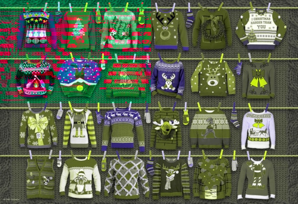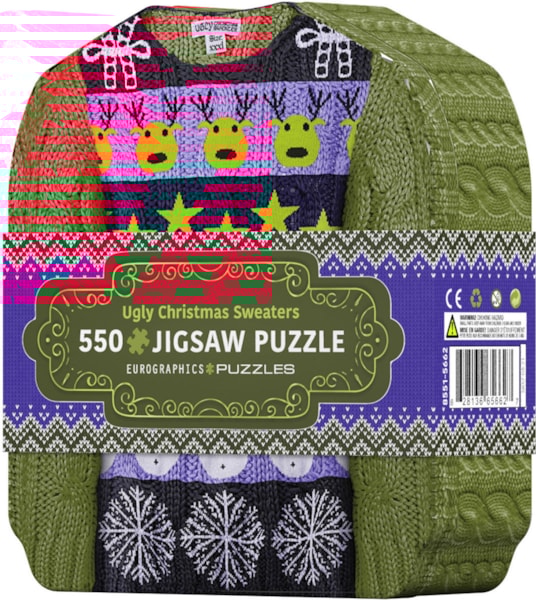 Celebrate the festive season with the Ugly Christmas Sweaters Tin 550-piece puzzle by Eurographics! This fun and colorful puzzle features a vibrant display of quirky and festive holiday sweaters, making it the perfect activity for the whole family.