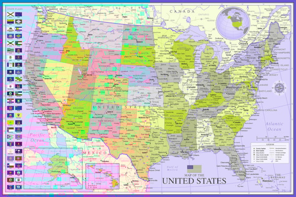 | Affiches d'Art | Cartes & Géographie, Cartes d'Amérique du Nord |
