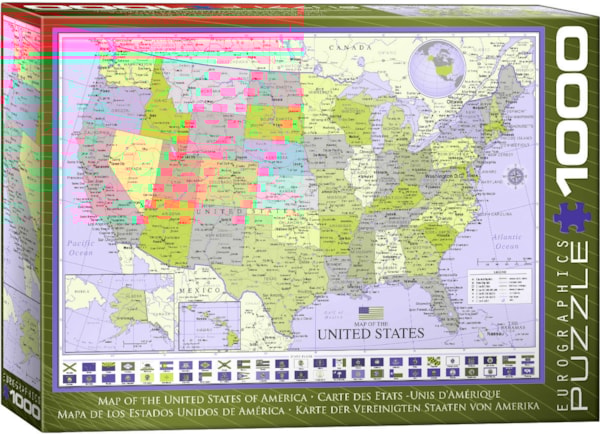EuroGraphics Carte des États-Unis d'Amérique 1000-pièces Puzzle- Taille de la boîte: 10" x 14" x 2.37". Taille terminée du puzzle: 19.25" x 26.5".