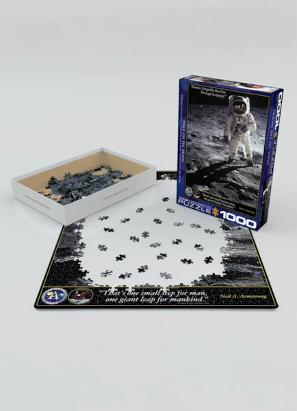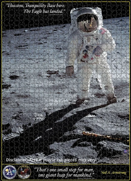 Ce puzzle célèbre les premiers pas toujours prises par l'humanité sur la Lune.