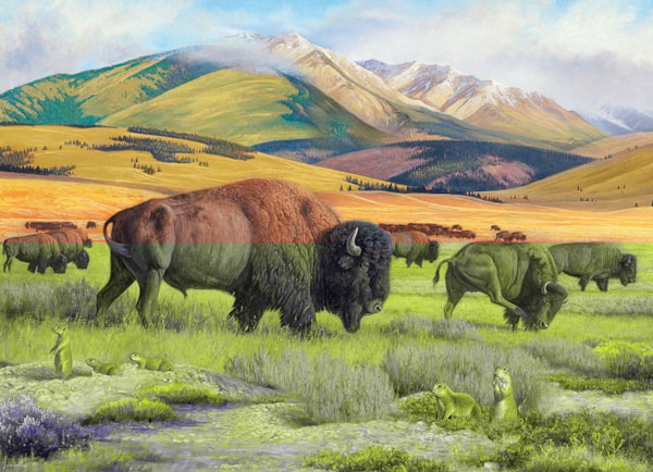 Ce casse-tête de 1000 pièces d'Eurographics, intitulé « Errant dans les plaines », représente un majestueux troupeau de bisons dans un paysage naturel époustouflant. L'œuvre détaillée de Hayden Lambson capture la puissante présence des bisons alors qu'ils paissent dans une vaste prairie.