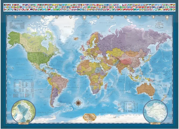 Explorez le monde depuis votre salon avec le puzzle Eurographics Carte du monde de 1000 pièces! Ce superbe puzzle représente une carte du monde magnifiquement rendue, avec tous les continents, pays et grandes villes représentés avec précision. En assemblant le puzzle, vous découvrirez différentes cultures, géographies et climats, et vous aurez l'impression de vivre une aventure mondiale !