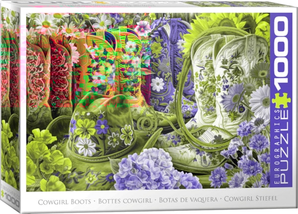 Entrez dans le monde vibrant du Far West avec le casse-tête de 1000 pièces Bottes cowgirl d'Eurographics, mettant en vedette la superbe œuvre de Lars Stewart ! Ce puzzle coloré présente un magnifique éventail de bottes de cowgirl richement brodées, ornées de motifs floraux complexes, accompagnées d'un chapeau de cowboy assorti. Entourées de fleurs éclatantes, chaque botte raconte une histoire de style audacieux et d'élégance rustique, créant une célébration visuelle saisissante de la culture de l'Ouest.