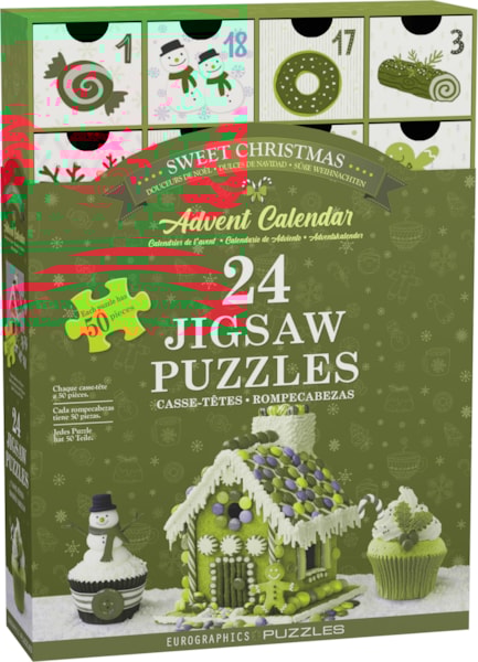 Préparez-vous à célébrer la période la plus sucrée de l'année avec le calendrier de l’Avent Douceurs de Noël de Eurographics ! Ce calendrier enchanteur contient 24 mini puzzles, chacun composé de 50 pièces, révélant des images joyeuses de gourmandises festives, maisons en pain d'épices, cupcakes et bien plus ! Chaque jour avant Noël, ouvrez un tiroir et assemblez un puzzle mettant en scène une délicieuse douceur.