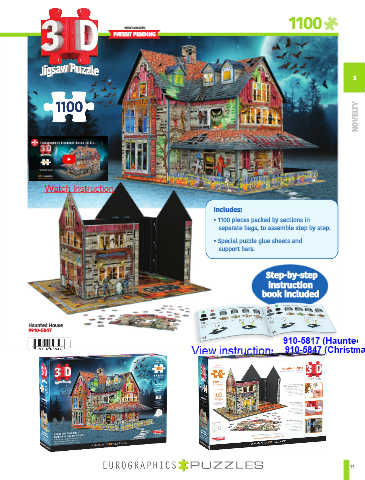 1100 NEW CONCEPT PATENT PENDING 2 NOVELTY Includes: • 1100 pieces packed by sections in separate bags, to assemble step by step. • Special puzzle glue sheets and support bars. Step-by-step instruction book included Haunted House 9910-5847 11