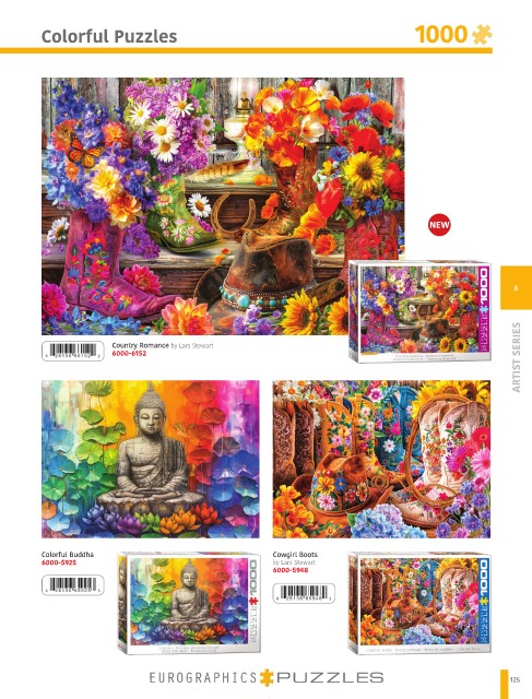 Colorful Puzzles 1000 6 ARTIST SERIES Country Romance by Lars Stewart 6 2 8 1 3 6 6 6 1 5 2 2 6000-6152 Colorful Buddha Cowgirl Boots 6000-5925 by Lars Stewart 6000-5948 6 2 8 1 3 6 6 5 9 2 5 3 125