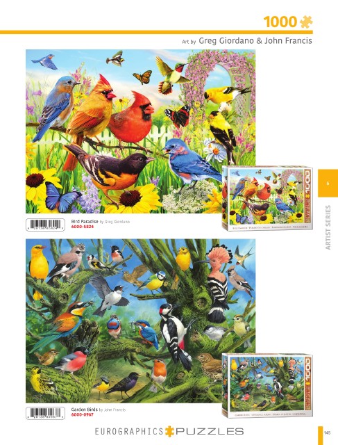 1000 Art by Greg Giordano & John Francis 6 ARTIST SERIES BIrd Paradise by Greg Giordano 6000-5824 Garden Birds by John Francis 6000-0967 6 2 8 1 3 6 6 0 9 6 7 8 145