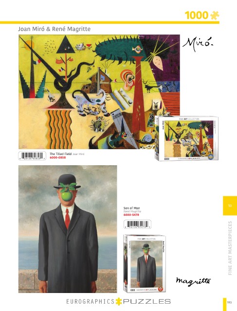 1000 Joan Miró & René Magritte The Tilled Field Joan Miró 6000-0858 6 2 8 1 3 6 6 0 8 5 8 9 10 10 Son of Man René Magritte 6000-5478 FINE ART MASTERPIECES 6 2 8 1 3 6 6 5 4 7 8 4 193