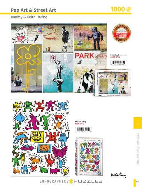 Pop Art & Street Art 1000 Banksy & Keith Haring Street Art by Banksy 6000-5765 6 2 8 1 3 6 6 5 7 6 5 5 Keith Haring 6000-5513 10 6 2 8 1 3 6 6 5 5 1 3 2 FINE ART MASTERPIECES 197