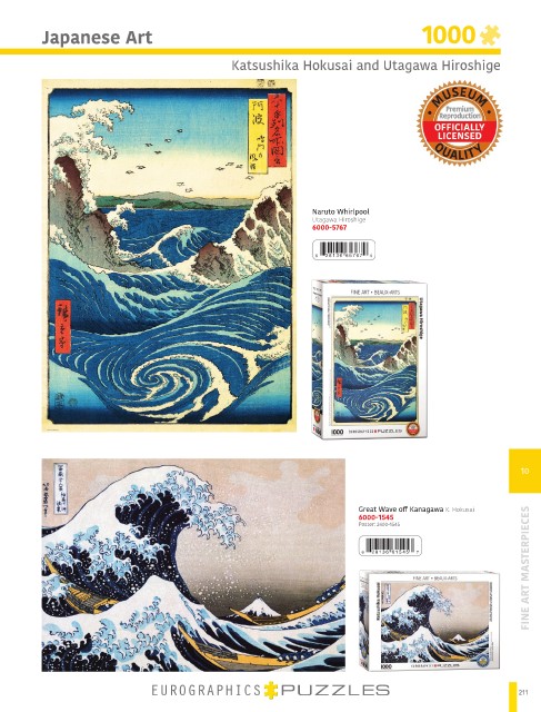 Japanese Art 1000 Katsushika Hokusai and Utagawa Hiroshige Naruto Whirlpool Utagawa Hiroshige 6000-5767 6 2 8 1 3 6 6 5 7 6 7 9 10 FINE ART MASTERPIECES Great Wave off Kanagawa K. Hokusai 6000-1545 Poster: 2400-1545 6 2 8 1 3 6 6 1 5 4 5 7 211