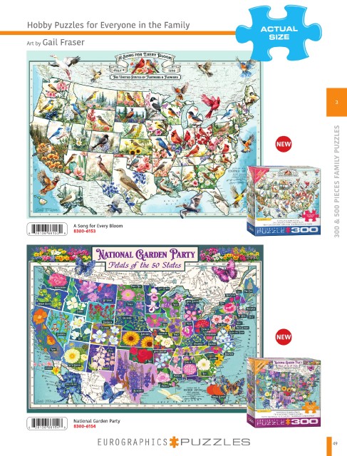 Hobby Puzzles for Everyone in the Family ACTUAL SIZE Art by Gail Fraser 3 A Song for Every Bloom 300 & 500 PIECES FAMILY PUZZLES 6 2 8 1 3 6 6 6 1 5 3 9 8300-6153 National Garden Party 6 2 8 1 3 6 6 6 1 5 4 6 8300-6154 49