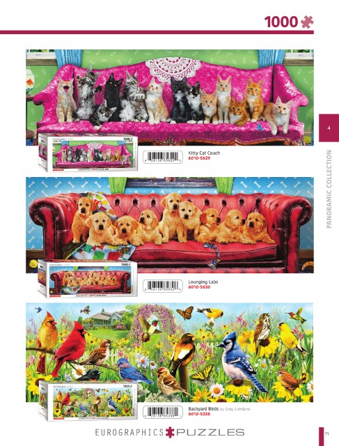 1000 4 PANORAMIC COLLECTION Kitty Cat Couch 6010-5629 6 2 8 1 3 6 6 5 6 2 9 0 Lounging Labs 6010-5630 6 2 8 1 3 6 6 5 6 3 0 6 Backyard Birds by Greg Giordano 6010-5338 6 2 8 1 3 6 6 5 3 3 8 1 71